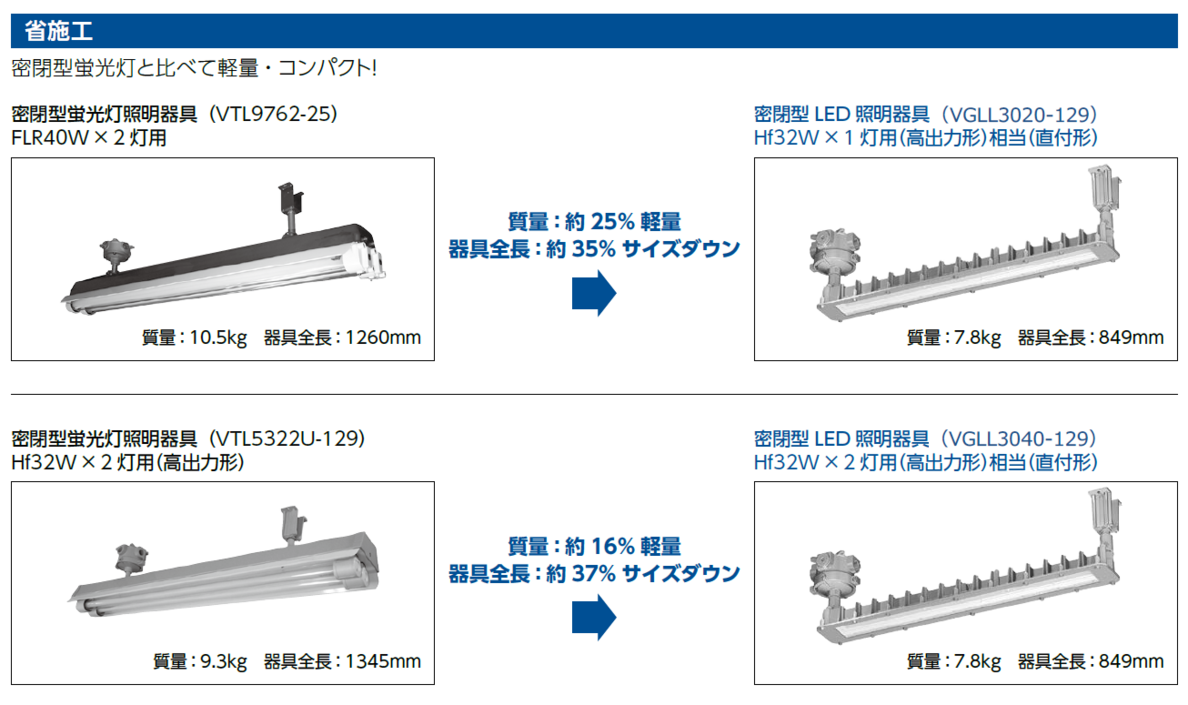 密閉型蛍光灯代替LED照明器具 VGLL3